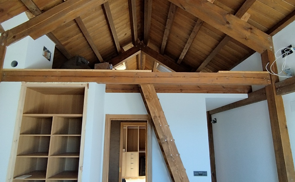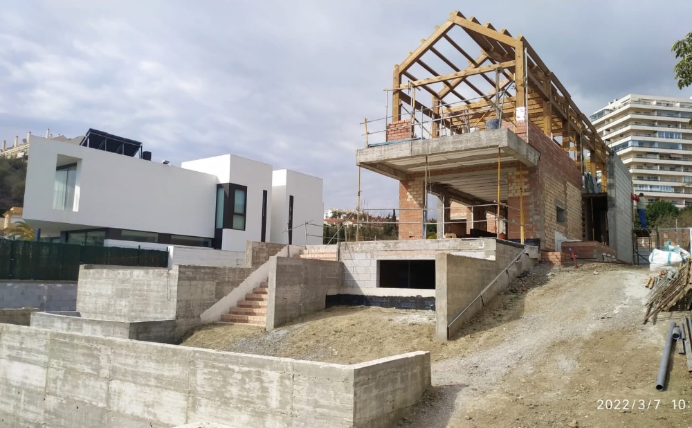 Construcción de nueva vivienda unifamiliar en Benalmádena. Sobre una estructura de hormigón armado, se proyecta y ejecuta una planta completa con estructuras y revestimientos de madera.