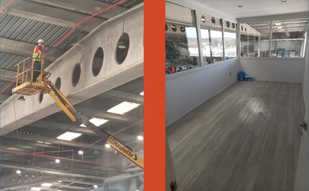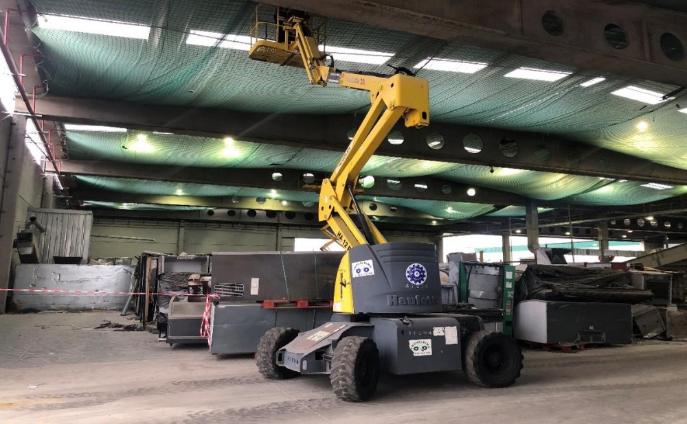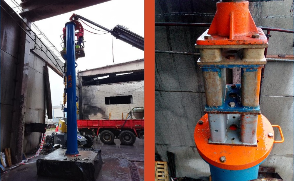 Nave industrial construida con estructuras de hormigón prefabricado de grandes dimensiones, que sufrió un incendio en parte de su superficie. BABE se encargó de diseñar y ejecutar los elementos para rehabilitación de la nave para su mismo uso. Se aplican técnicas de refuerzo de hormigón, apeos de elementos pesados, ensayos con ultrasonidos para determinación de lesiones en elementos estructurales, etc…