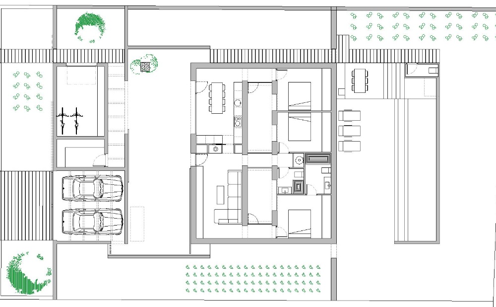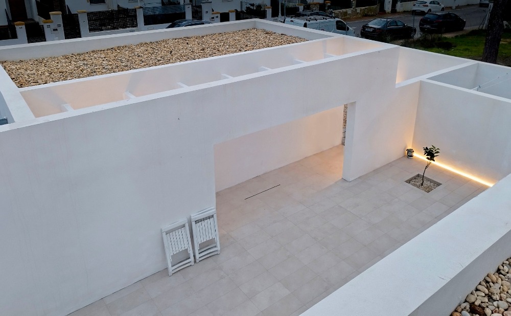 Construcción de vivienda unifamiliar a la forma tradicional. Construcción vernácula. Muros de carga anchos, techos altos, el patio como centro de la vivienda. Sucesión de espacios abiertos y cerrados dentro de la vivienda, sin pasillos. Con lenguaje y técnicas modernas.
