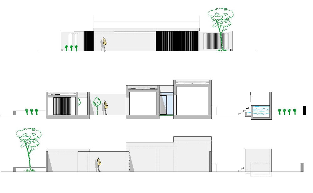 Piscina elevada “alberca”, sucesión de espacios interior/exterior que se alternan.